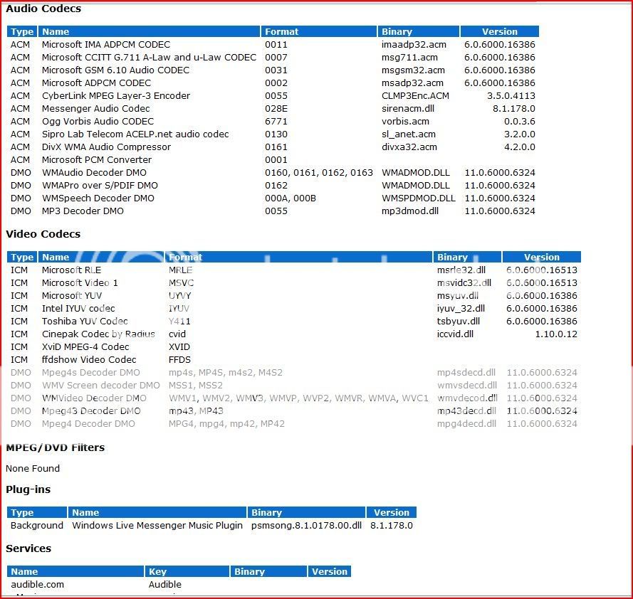 I have more than likely messed up the codec's because of all the packs I DL'ed.