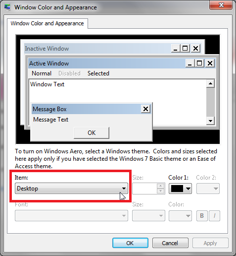 I think it has to with a long time ago, I downloaded a program that let me change advanced appearance settings very easily to make my computer faster.