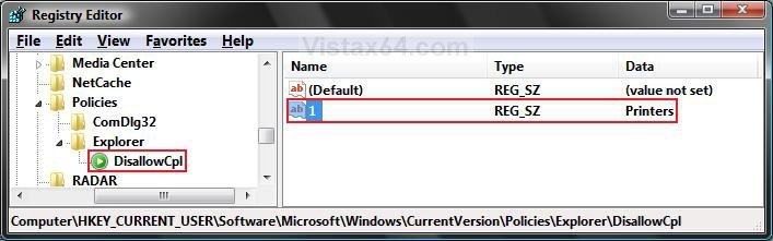 - Type in the name of the Control Panel icon you want hidden exactly as it apppears in the Control Panel. (See screenshots below) NOTE: For example, Printers.