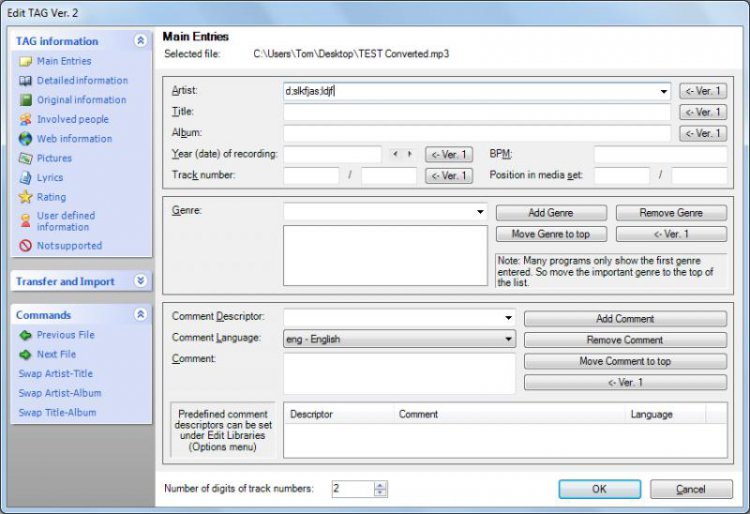 - Select all of the files that need fixing and click Extended Functions > Transfer/Convert TAGs or press F7.