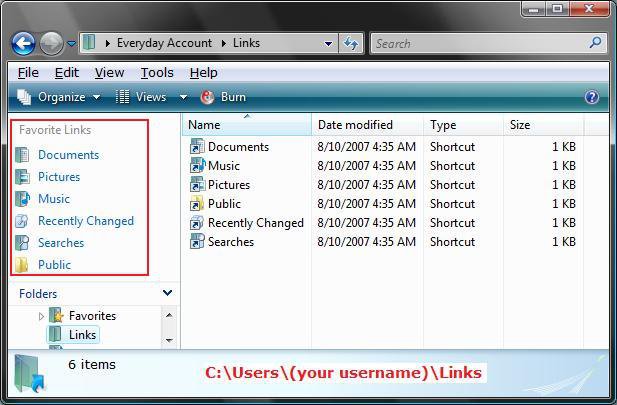 2. Navigate to C:\Users\(User Name)\Links in a Windows Explorer window.