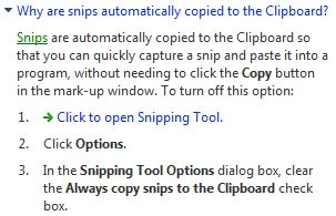 5) The default setting for the 'Snipping Tool' is to have a red band around the snip (you can change the colour of this band if you wish). I have turned this option off for this tutorial, but to illustrate this option, the next 2 images show this effect, firstly enabled and secondly disabled. Note that it still appears whilst you are selecting the snip so that you know what you are selecting. This option is found under 'Snipping Tools Options (click the 'Options' button to open this dialogue box. The option you require is 'Show selection ink after snips are captured'.
