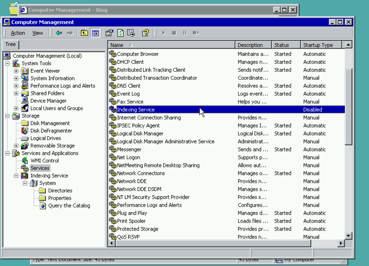 When Windows XP came around, the Indexing Service again shipped as part of Windows and was also enabled by default. Like all previous versions, it ran as “cisvc.exe” which stood for content indexing service.