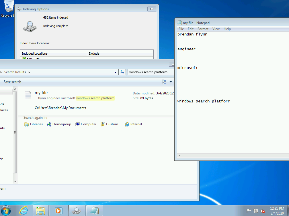 The service in Windows 7 also kept track of where certain words were in the files so that Windows’ components such as file explorer above could highlight those occurrences on screen.