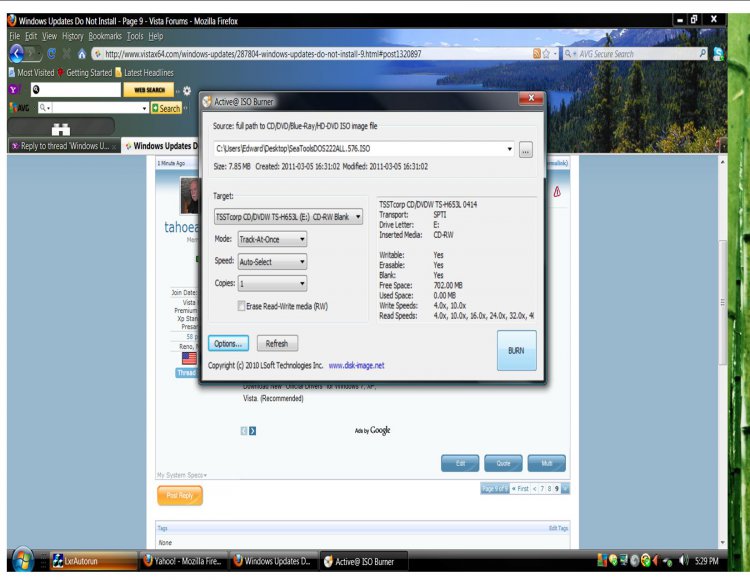 I installed based on previous messages an ISO Burner LSoft Technologies that I burned the CBS file sent to Nierimo.